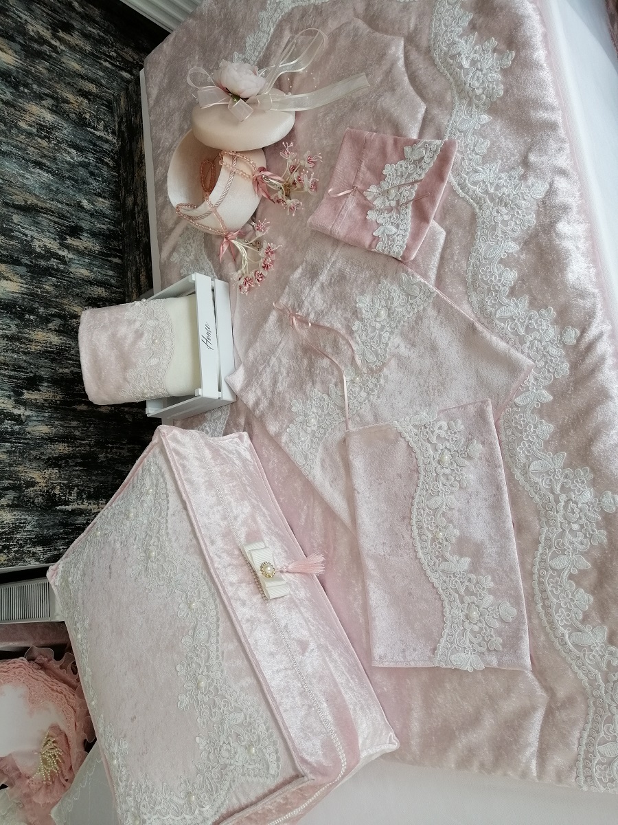 Fransız Dantelli Nişan Bohça Seti-Pudra